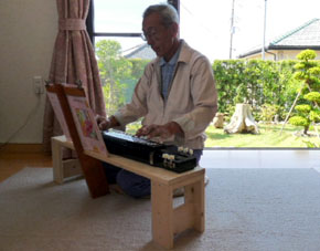 そしてなんと!ご自分で弾きやすいスタイルに合わせたお手製演奏台を工夫して作られたり、練習風景を録音した自作CDを作成され送って頂くなどの熱心なお稽古ぶりを度々ご報告下さいました。